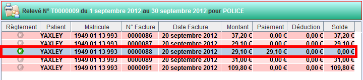 Relevé des factures en tiers payants